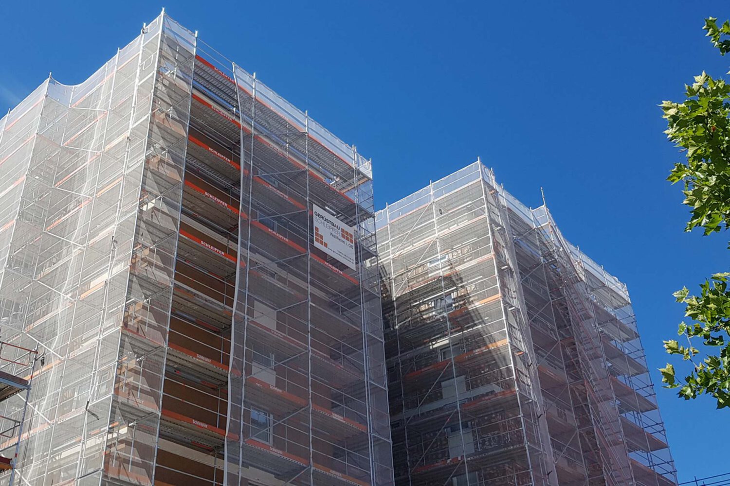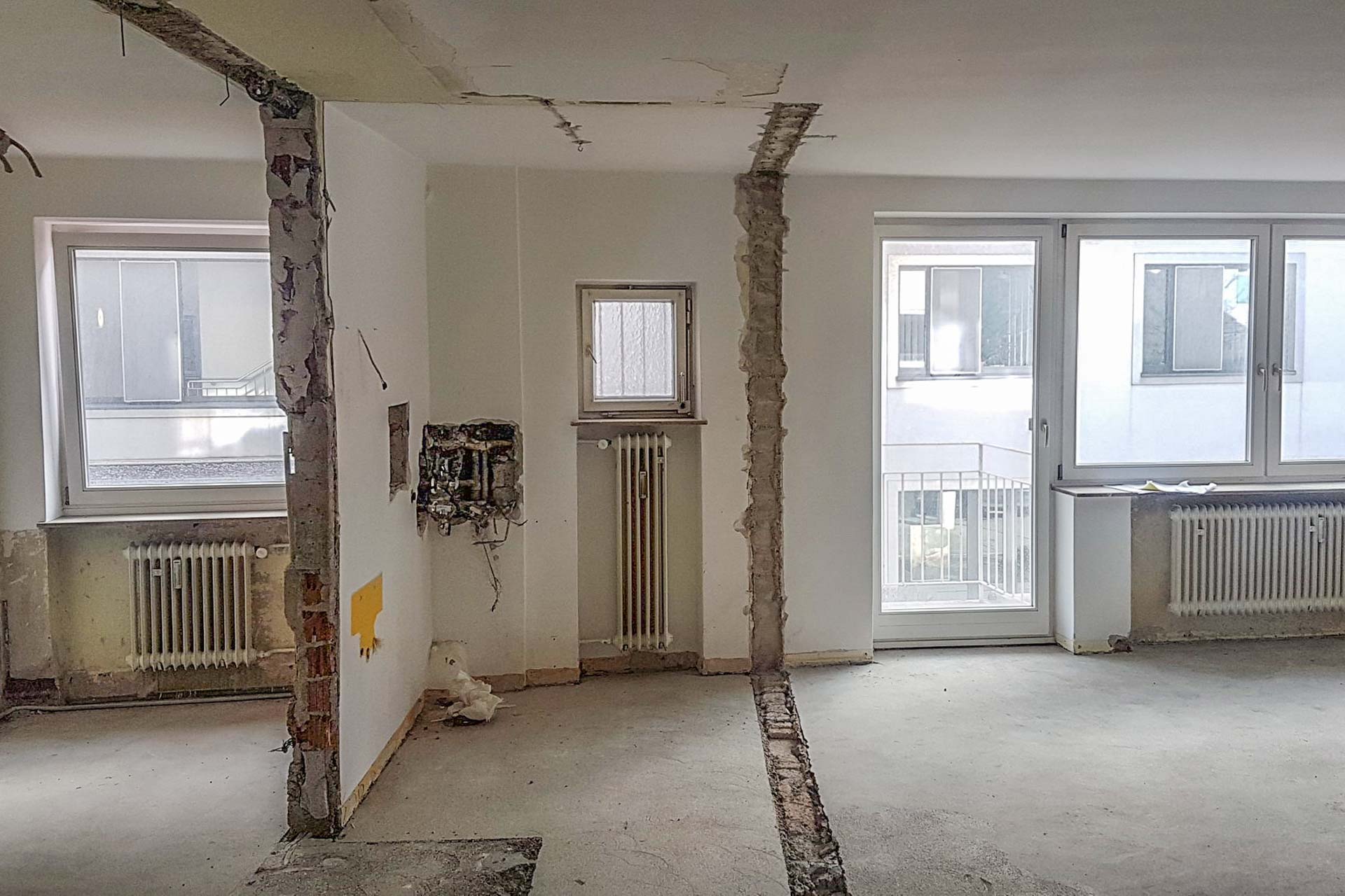 Der Projektentwickler suchte für die schlüsselfertige Kernsanierung der beiden Bestandshochhäuser einen im Bauen im Bestand erfahrenen Bauunternehmer, der neben der Kernsanierung der ca. 20 Leerstandwohnungen auch die ca. 40 bewohnten Wohnungen und Arztpraxen im laufenden Betrieb teilsanieren kann. Nach kurzer Verhandlung fiel insbesondere aufgrund unserer Qualifikation in der Schadstoffsanierung die Entscheidung zu unseren Gunsten. Eine besondere Herausforderung in diesem Projekt war neben dem hohen Ausbauanspruch auch die Baustellenlogistik in den Gebäuden unter Berücksichtigung diverser ansässiger Arztpraxen.