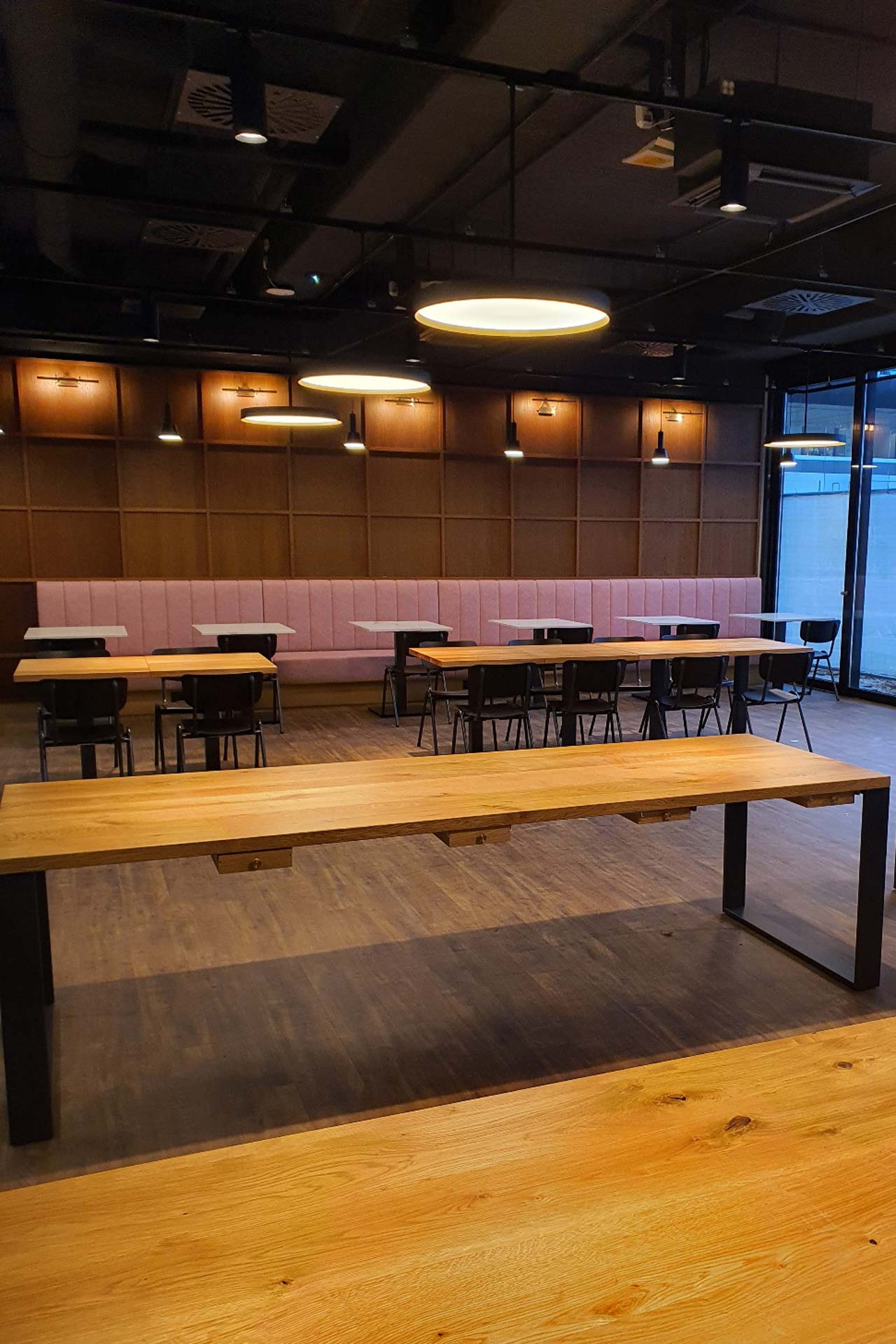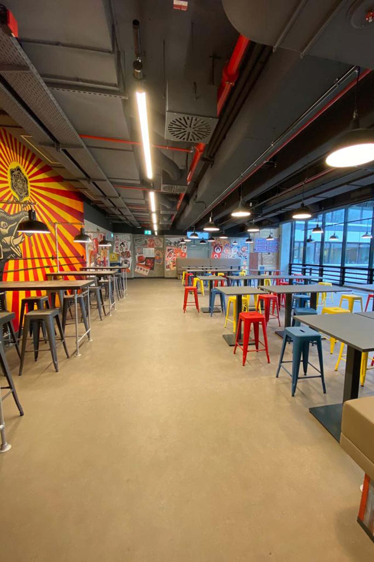 Der vollständige Innenausbau im Rahmen des Neubaus des Casino Süd im Haupthaus am Standtort Düsseldorf-Holthausen wurden unter besonderer Berücksichtigung geltender Hygiene- und Brandschutzmaßnahmen durchgeführt. Neben dem vollständigen Innenausbau haben wir im Rahmen des Bauen im Bestand die notwendigen marginalen Anpassungen am Rohbau erstellt.